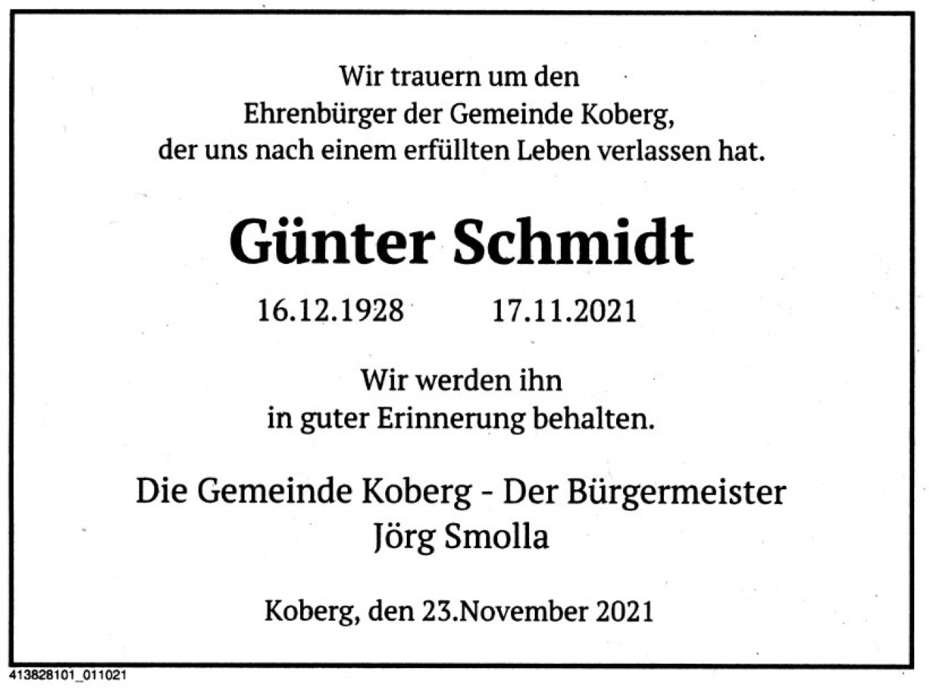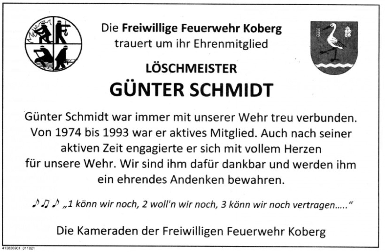 Der Ehrenbürger und Löschmeister a. D. unserer Feuerwehr, ist am 17. November 2021 verstorben.