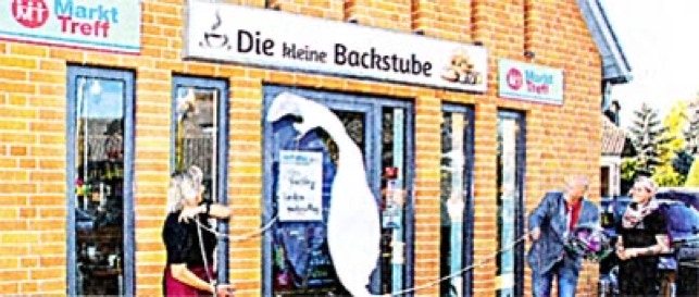 Koberg. „Wir freuen uns ungemein, mit Bettina Tönnies eine unserer Meinung nach bestens geeignete Betreiberin für den Dorfladen im MarktTreff gefunden zu haben“, erklärte Kobergs Bürgermeister Jörg Smolla gestern Vormittag bei der feierlichen Enthüllung des neuen Namens „Die kleine Backstube“. Damit „spielt unsere Gemeinde wieder in der Oberliga“, erklärte er in einer sportlichen Redewendung und bezog sich damit auf die ohnehin gute Infrastruktur, die die Gemeinde ihren Bewohnern und Gewerbetreibenden bieten kann.