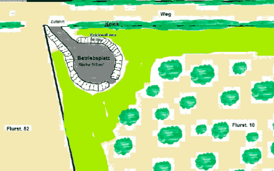 Plan mit dem Betriebsplatz an der Zufahrt (zitiert aus dem Protokoll der GV vom 13. Mai 2019)