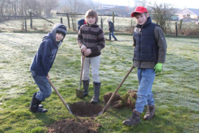 Tatkräftige Obstbaum-pflanzer in Koberg