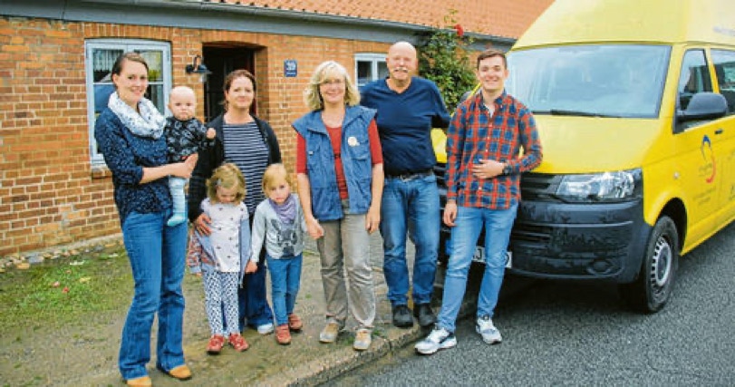 Die mobile Spieliothek des KJR ist wieder in Koberg: Es freuen sich Julia Dohrendorf-Steffen mit Matti, Nicole Korthals mit Töchtern, Elke Böckmann, Bürgermeister Jörg Smolla und Bufdi Eike Elias.